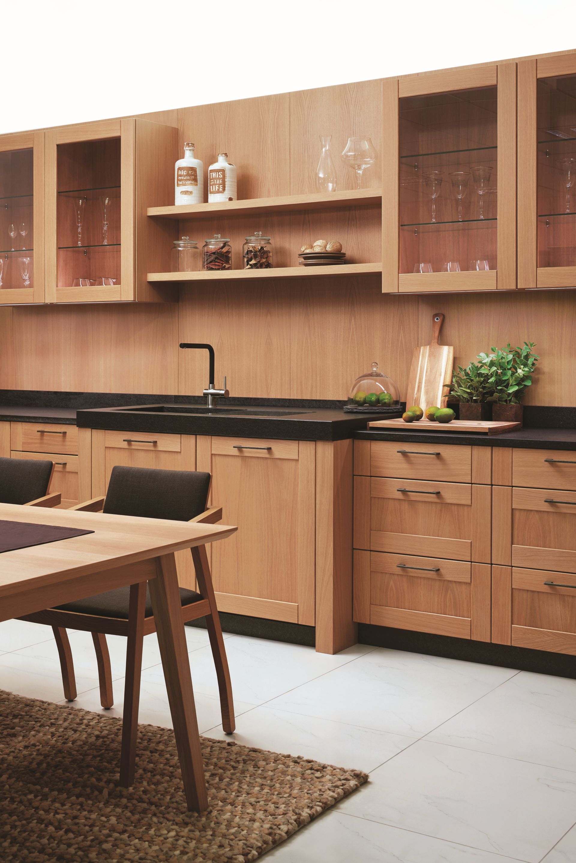 Ľahkosť žitia na vidieku. Ten pocit evokuje kuchyňa FORM so štruktúrou hrčovitého duba. Skrátka, krásne miesto na každodenný život.